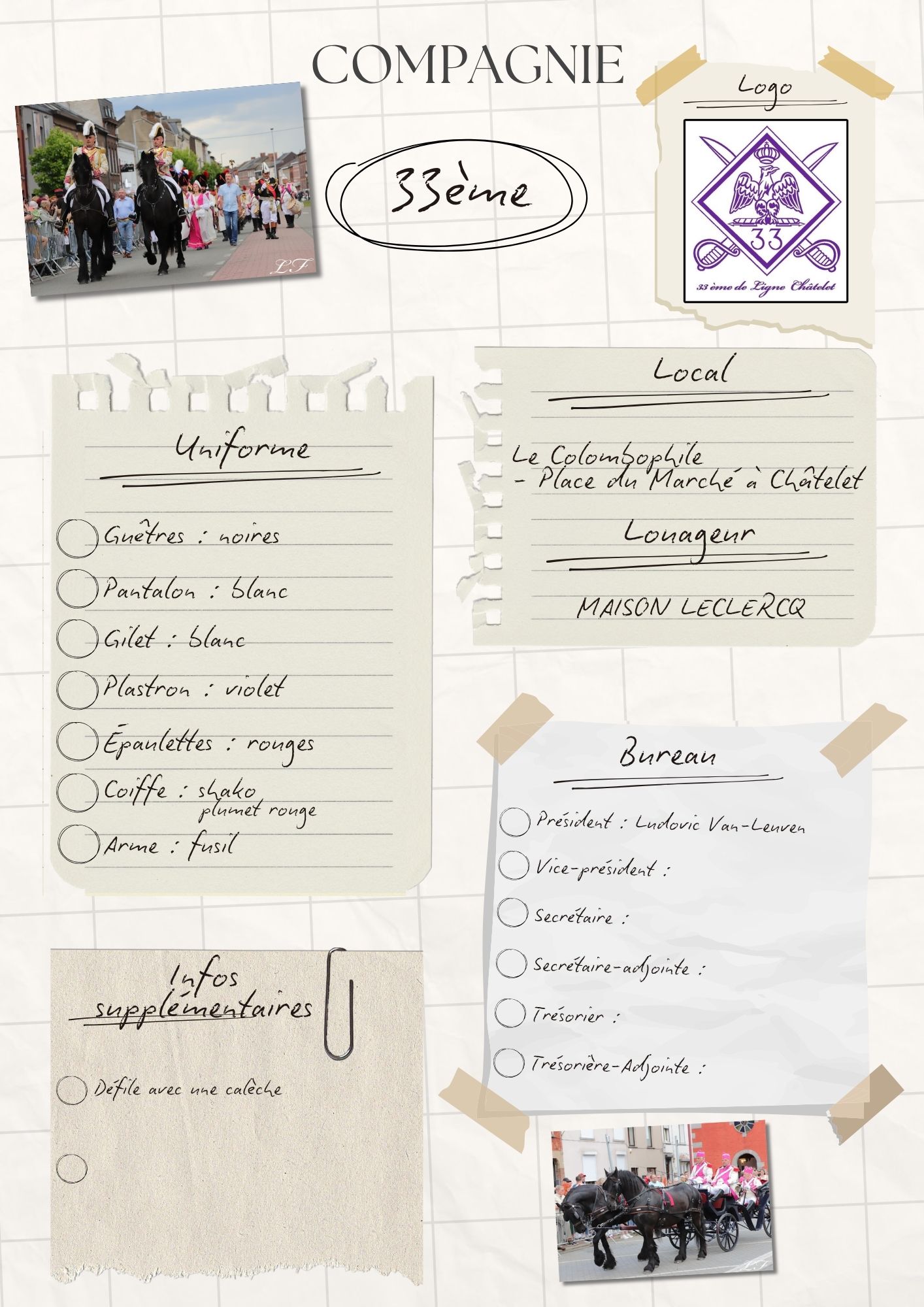 - 25 mai : Remise officielle d'un costume du 33ième à Manneken-Pis à l'occasion du 40ème anniversaire de la compagnie.