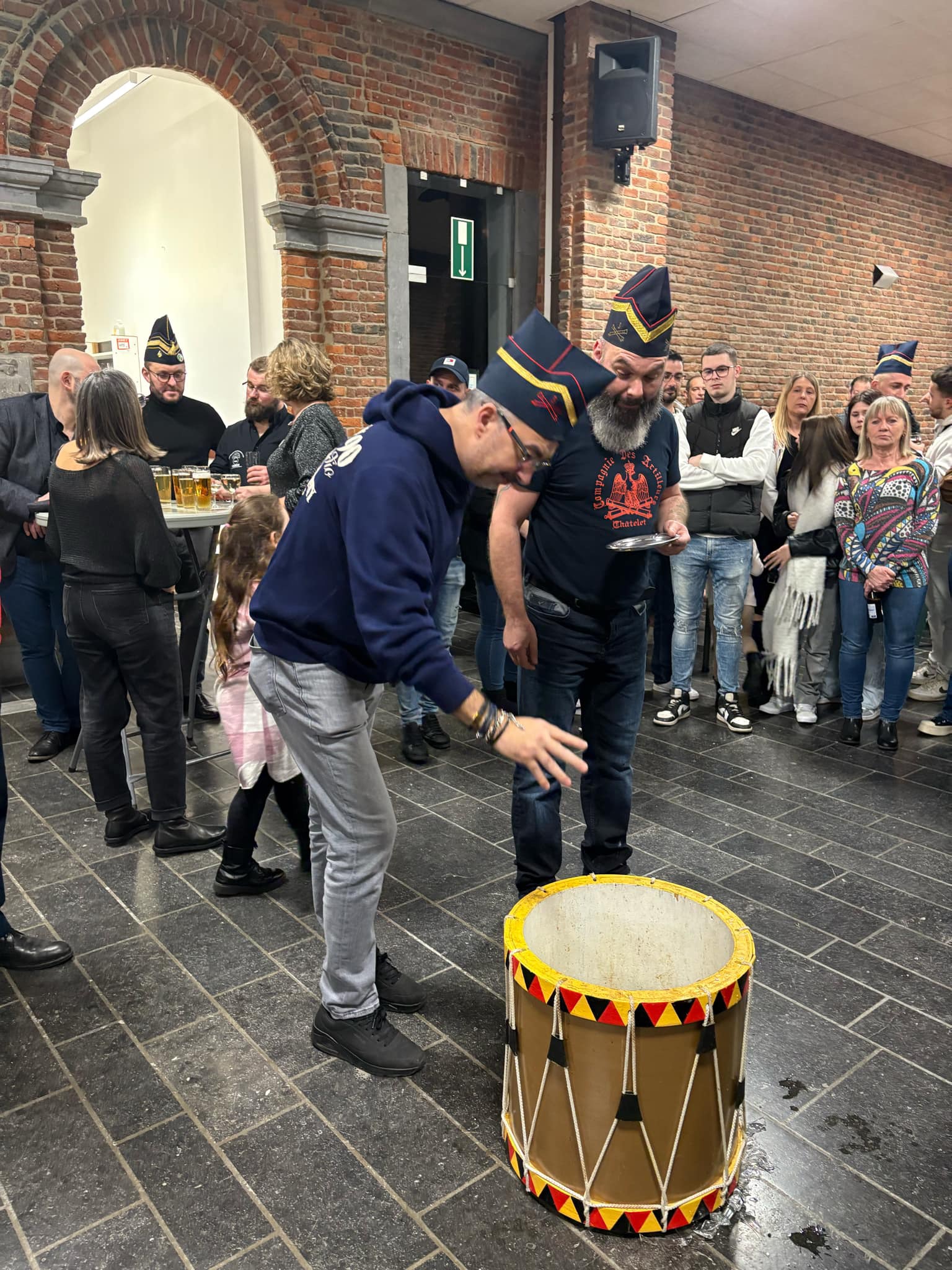 Durant la cérémonie, chaque officier postulant est invité, dans l’ordre de marche pour chaque compagnie, à prendre un verre rempli de vin blanc, de jus d’orange pour les enfants; à le lever, le vider d’une traite et à le jeter violemment dans un bac en forme de tambour afin de le « casser ». Le tout en présence de nombreux marcheurs, du Bourgmestre et des Échevins.